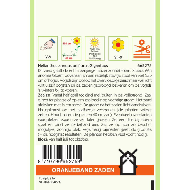 Dit zaad geeft de echte reuzenzonnebloem. Steeds één enorme